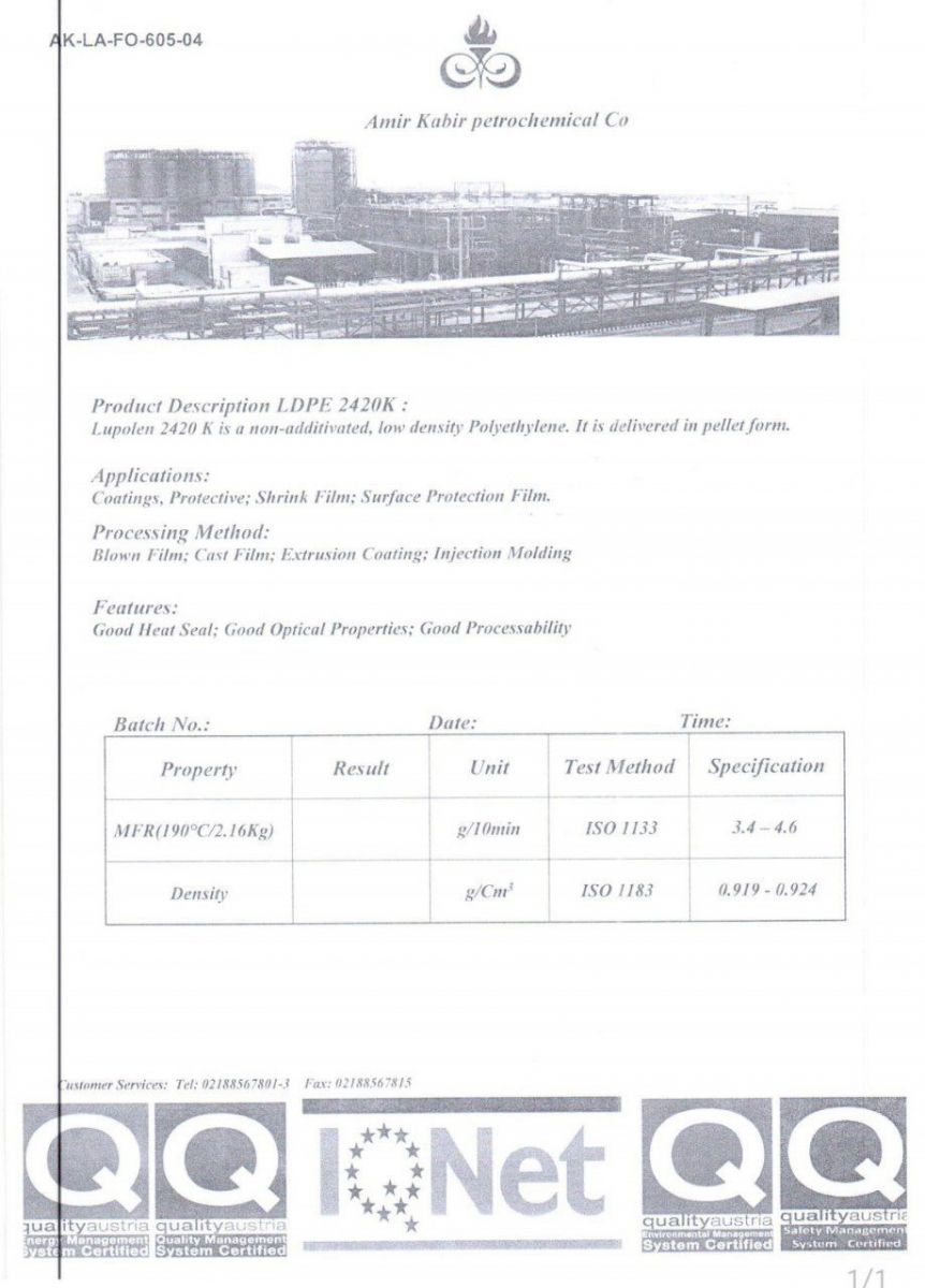 پلیاتیلن سبک 2420K برای کاربردهای خاص طراحی شده است و نباید در کاربردهای حساستر استفاده شود. - عدم مقایسه دقیق با دیگر محصولات:
