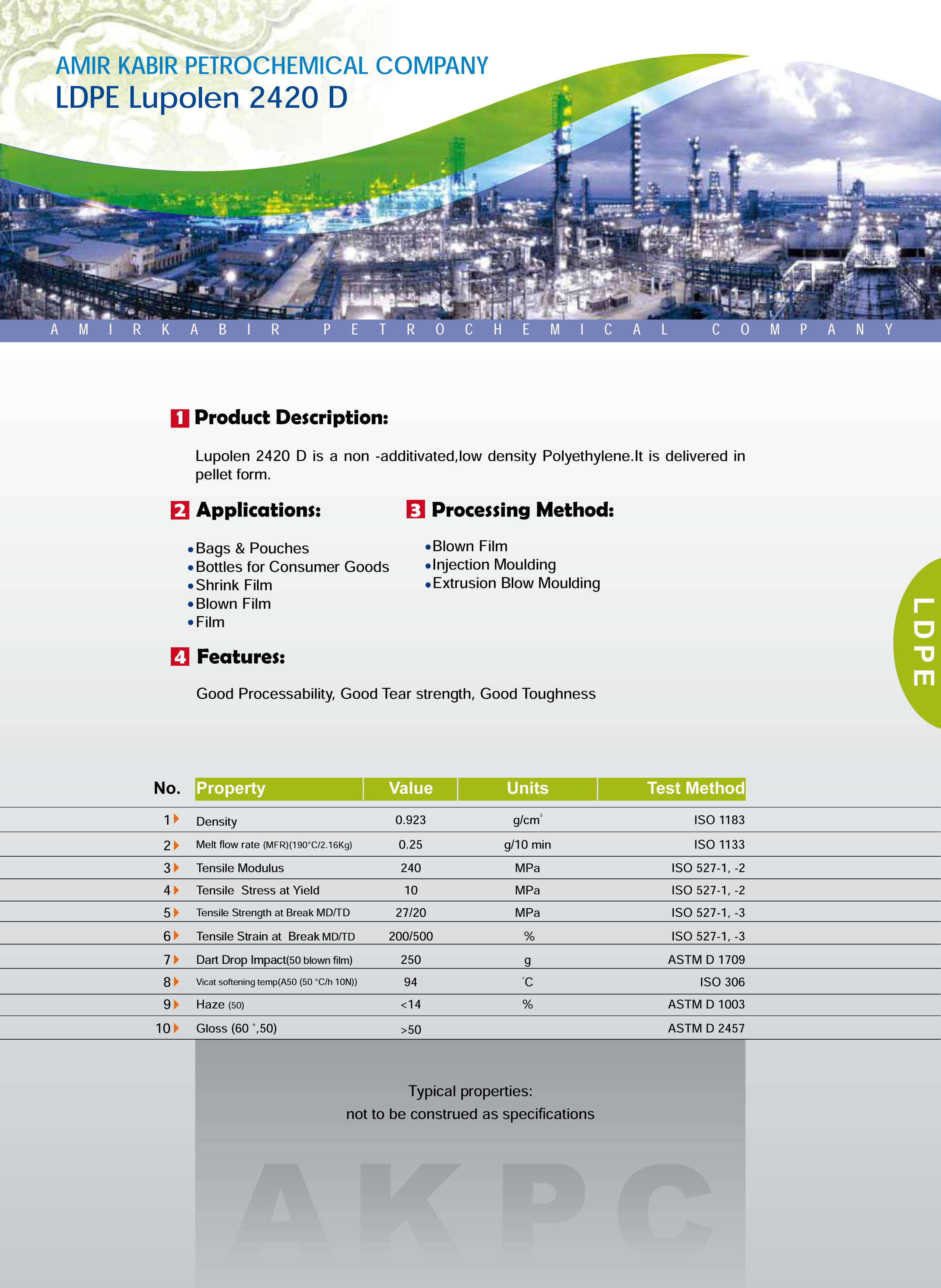 2420D امیرکبیر یک گرید پلیمری با ویژگیهای خاص است که آن را برای کاربردهای مختلف از جمله بستهبندی شفاف و مقاوم مناسب میکند. ویژگیهای برجسته این محصول عبارتند از: